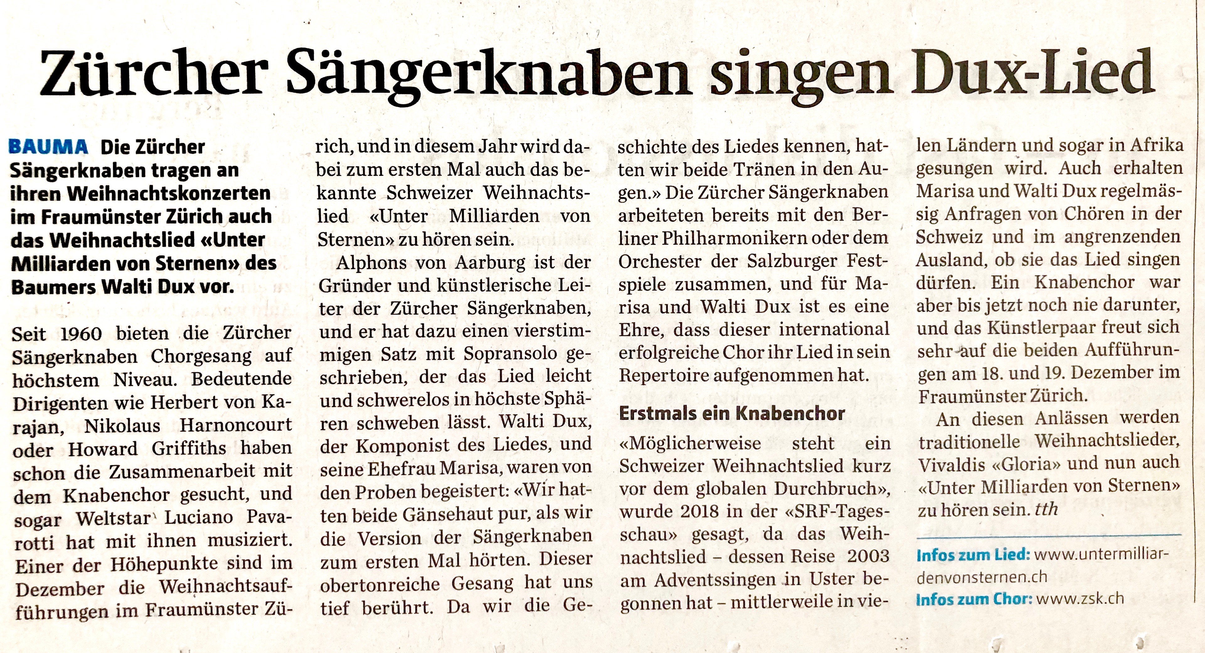 As early as 2003, musician and lyricist Walti Dux composed this Christmas song. Since then, the melody has been traveling the world — first in small steps, and now ever more widely. It is a melody that brings hope and, across languages, has taken on a very special meaning for many people.